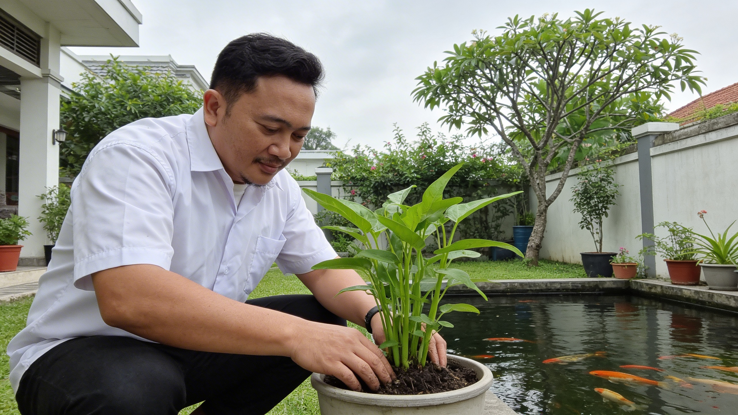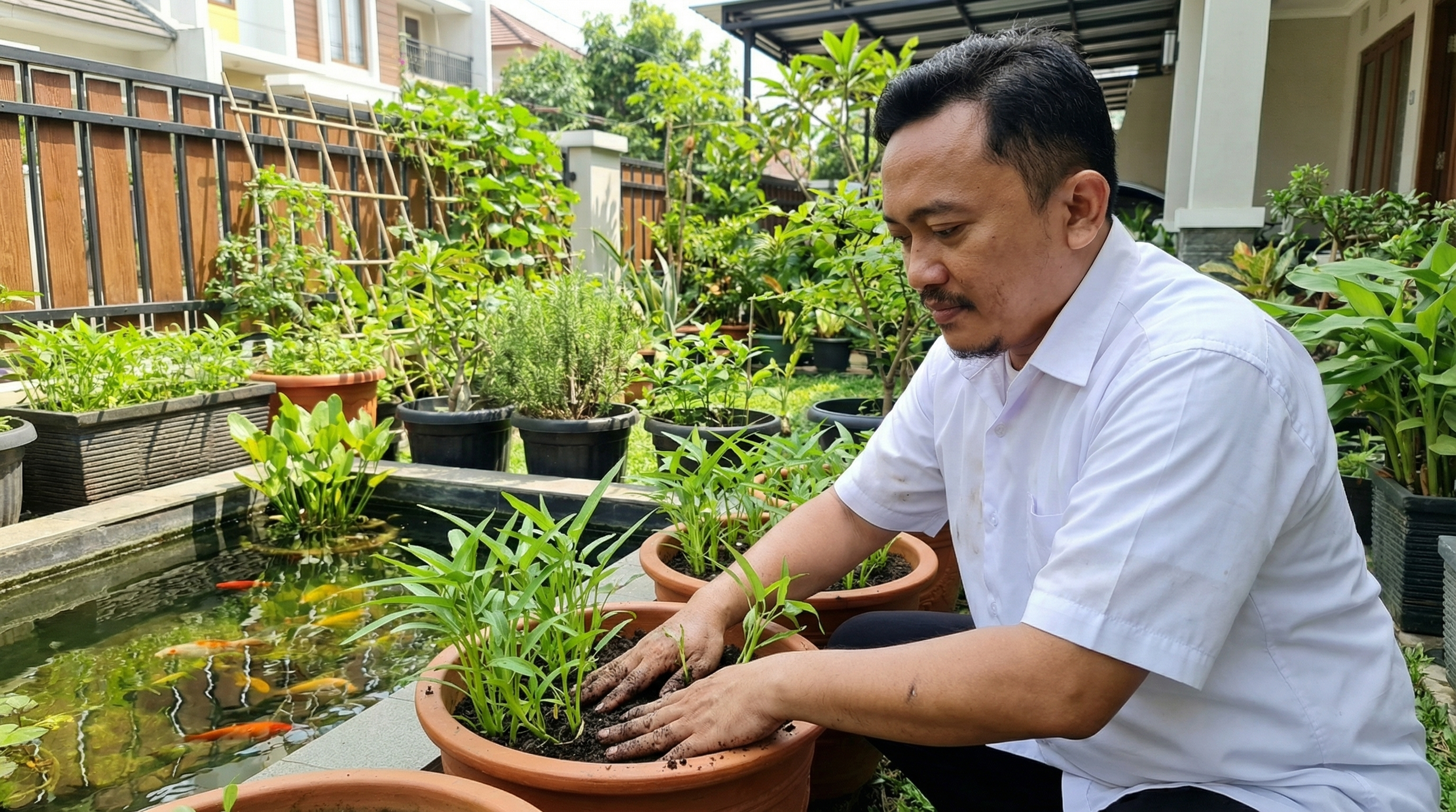 menanam kangkung di pekarangan rumah